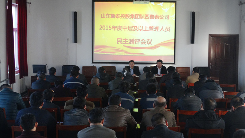 12月28日,陕西鲁泰在完成百吉、亿隆项目部职工评议干部的基础上,召开了2015年度中层及以上干部民主测评会议,党总支书记、总经理楚旭峰作了重要讲话,党总支委员田锋主持会议,公司机关、亿隆项目部、百吉项目部中层及以上领导、部分职工代表近60人参加了会议。