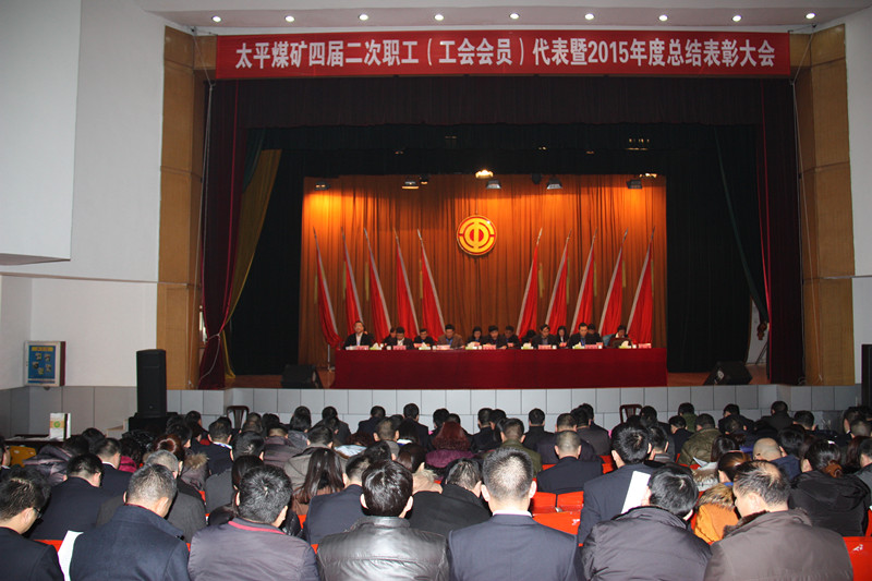 1月29日上午,太平煤矿四届二次职代会暨2015年度总结表彰大会在俱乐部大礼堂隆重召开。党委书记汤保民主持会议,矿长张玉标作了行政工作报告,其他班子成员出席会议,先进集体和个人以及职工代表、列席代表600余人参加大会。