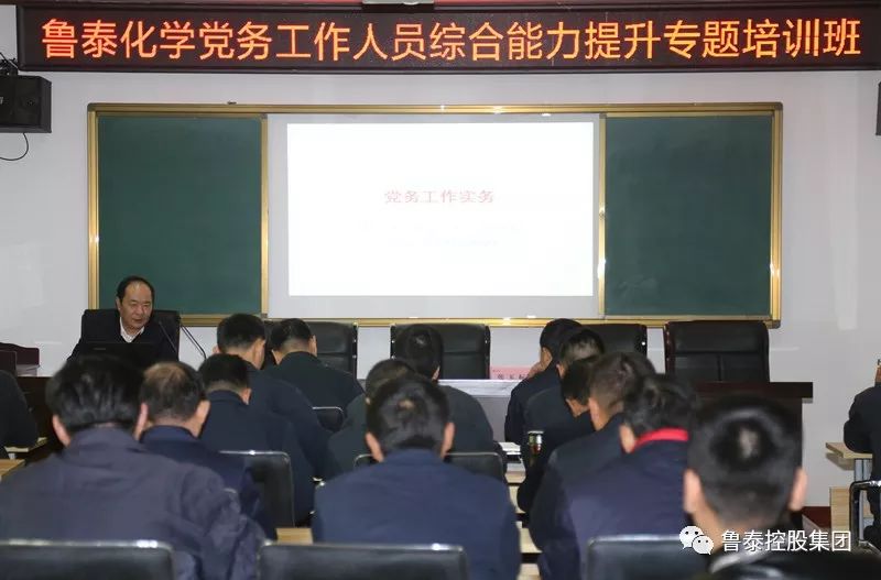 为提升党务工作者的业务水平和履职能力,规范基层党建工作,11月16日上午,鲁泰化学在四楼员工培训教室举办了党务工作人员综合能力提升专题培训班。化学公司党委班子成员,总经理助理以上党员领导,下属各党总支、党支部的书记、委员及相关部室党务工作者近40人参加培训。