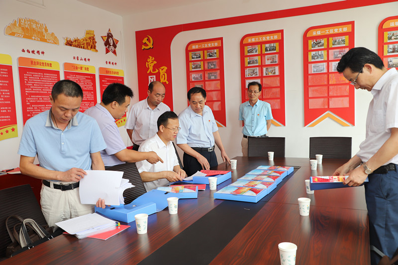 李合军一行到采掘楼、辅助楼党员活动室对基层党支部进行实地督导,认真查看支部建设内页资料,详细听取了运输工区党支部"13433"工作法,并在辅助楼党员活动室召开了部分党支部书记座谈会。会上,各党支部书记就支部建设进展情况进行汇报。李合军对各党支部"过硬支部"建设工作给予了肯定,对职工关心的热点、难点问题,为职工谋取更多的福祉等方面进行了详细解答,并就下一步工作提出要求。